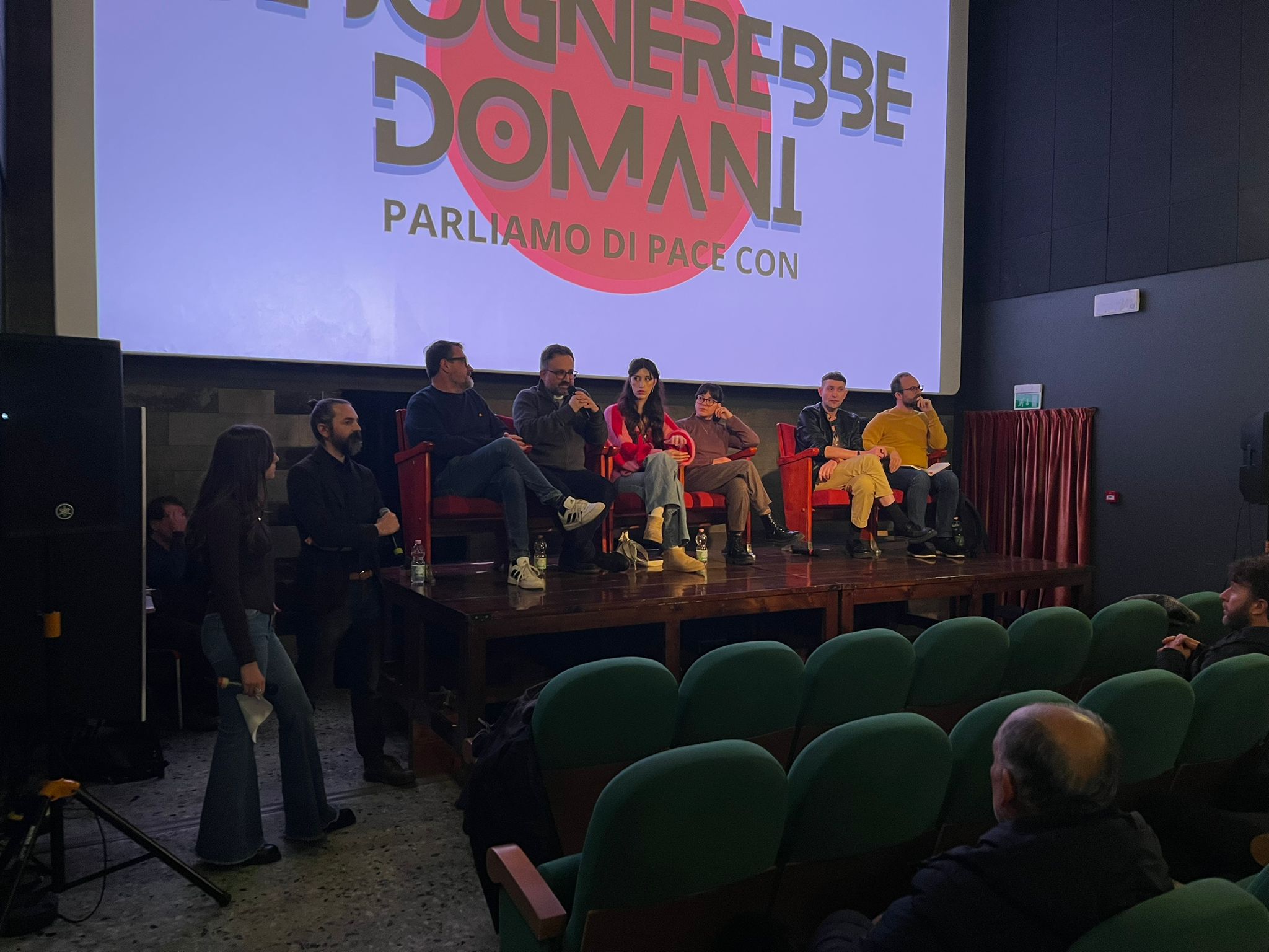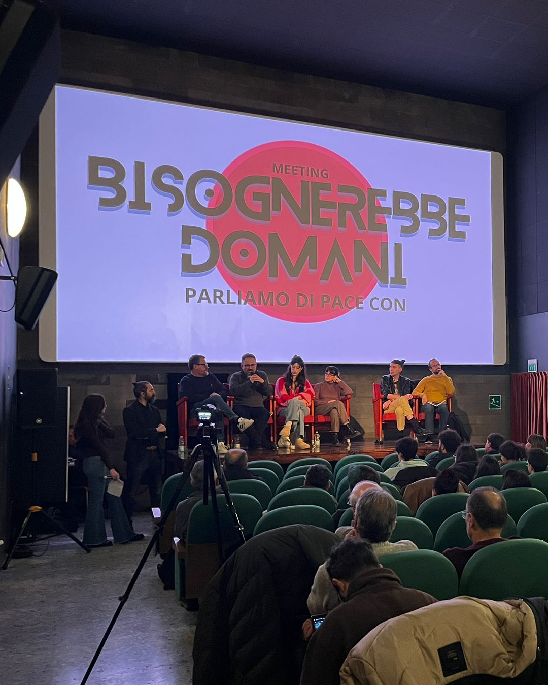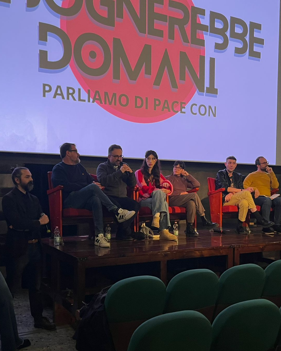 Il cinema PostModernissimo di via del Carmine a Perugia venerdì 30 gennaio ha ospitato l’evento di presentazione del nuovo singolo Bisognerebbe domani della band locale 88 Folli con il featuring di Finaz della Bandabardò alla voce e alla chitarra elettrica. Nel proscenio della sala cinematografica si sono accomodati gli organizzatori – i membri della formazione musicale e la CGIL di Perugia – insieme a relatori e relatrici impegnati quotidianamente, ognuno nel proprio settore e con le proprie sensibilità, per fare della pace e della solidarietà non chimere come il Grifo e il Leone della città, ma realtà sempre più visibili. Al termine la proiezione del videoclip ufficiale in anteprima e l’ascolto del singolo. L’incontro è stato moderato dai giornalisti Michele Bellucci e Sara Cecchini.