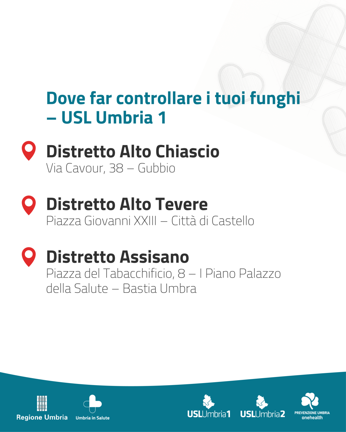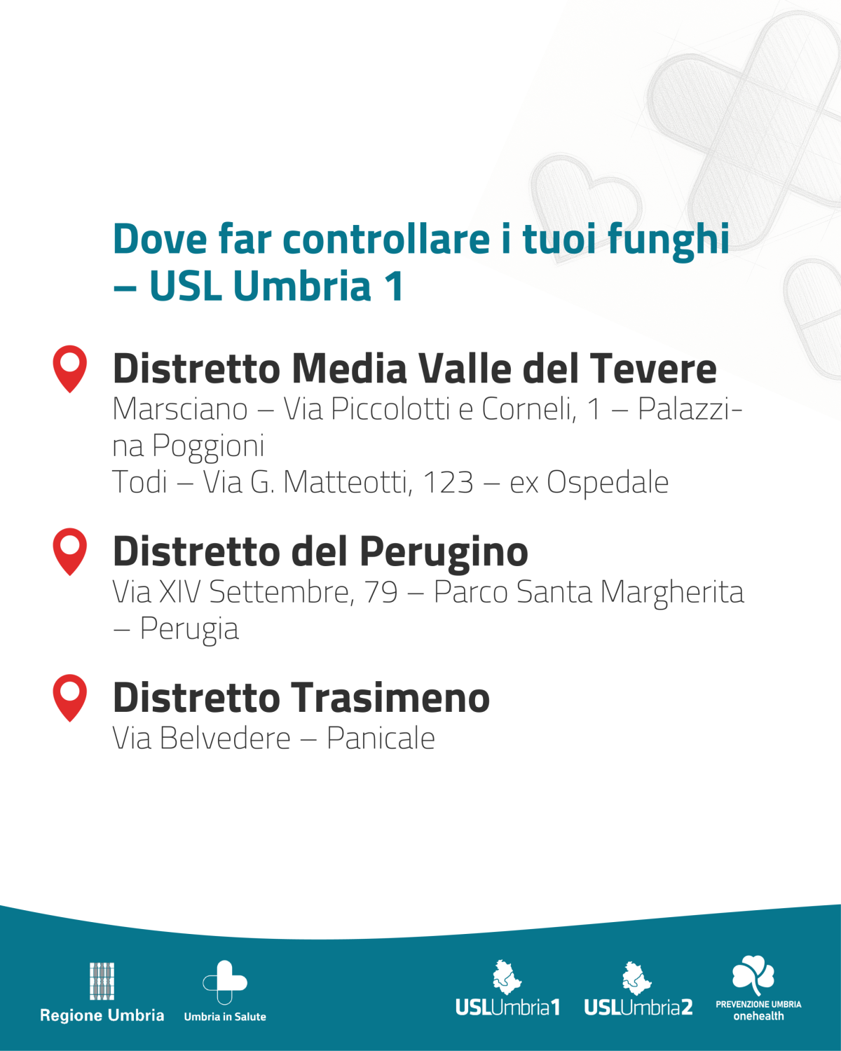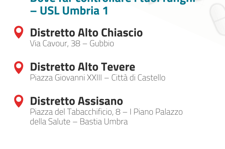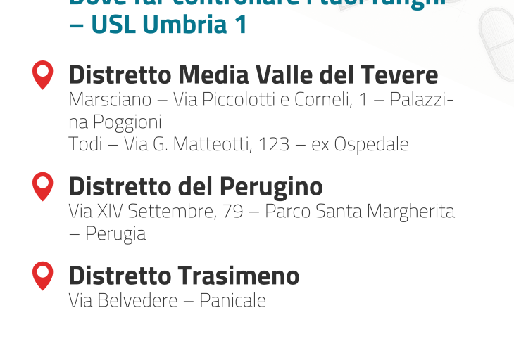 - Sedi e orari Azienda Usl Umbria 1 per il controllo gratuito dei funghi