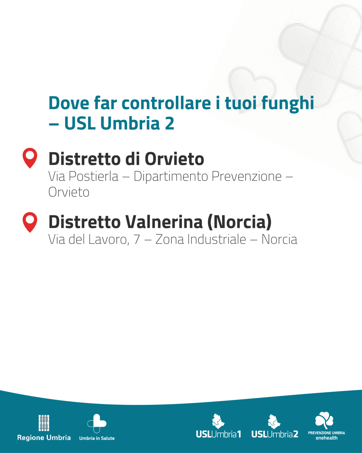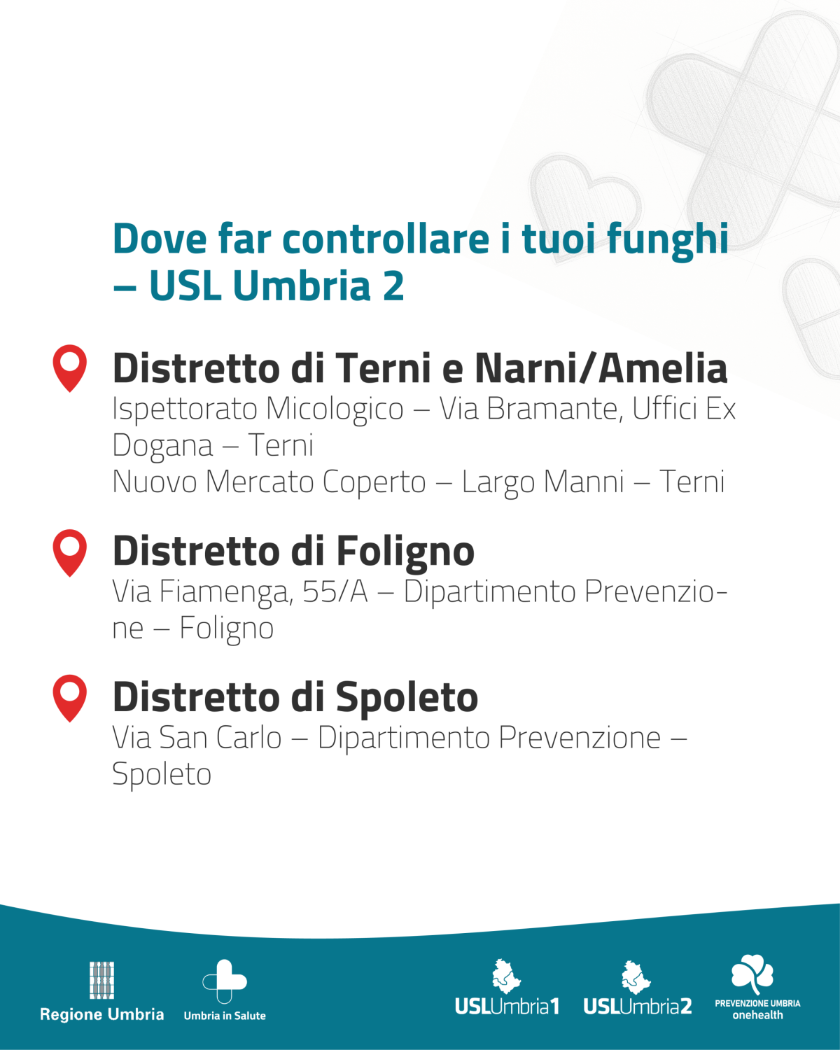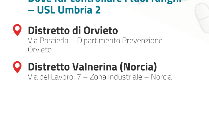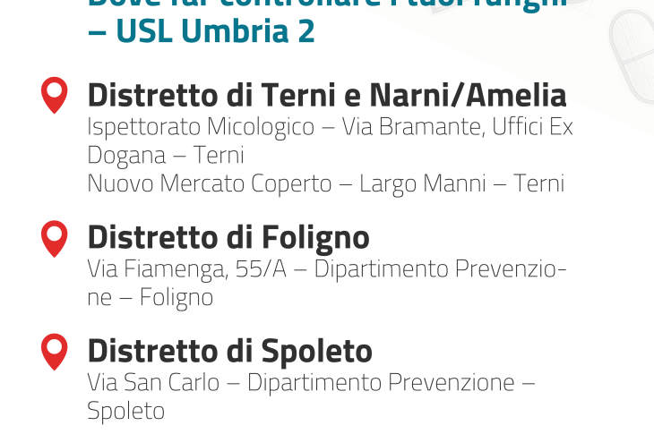 - Sedi e orari Azienda Usl Umbria 2 per il controllo gratuito dei funghi