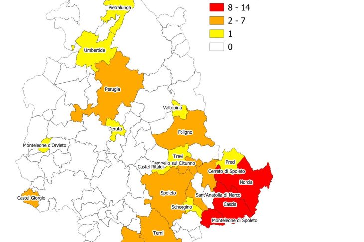 Situazione epidemiologica attuale in Umbria (Si rimanda alle cartine in fondo alla pagina)
