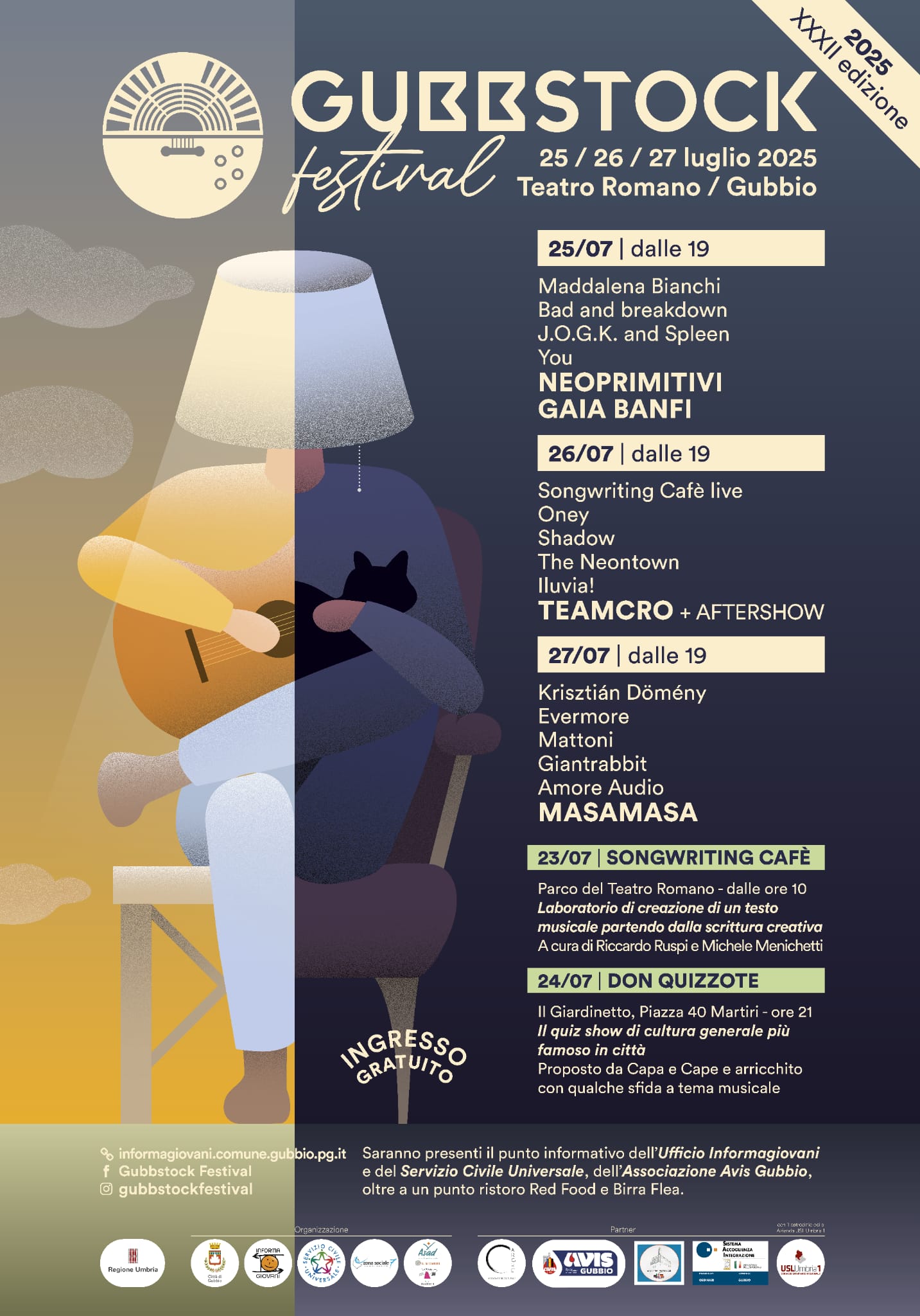 Per la XXXII° edizione sono stati selezionati otto progetti musicali, che si sono esibiti insieme a quattro headliners: i Neoprimitivi, Gaia Banfi, teamcro e Masamasa. La selezione, avvenuta tramite l’adesione al bando pubblicato nel sito dell’Informagiovani di Gubbio, prevedeva come criteri di preferenza la provenienza dalla Zona Sociale 7 e l'esecuzione di un repertorio originale e come requisito l’età: infatti, hanno potuto aderire tutti i gruppi o singoli artisti musicali che non avessero compiuto il trentesimo anno di età.