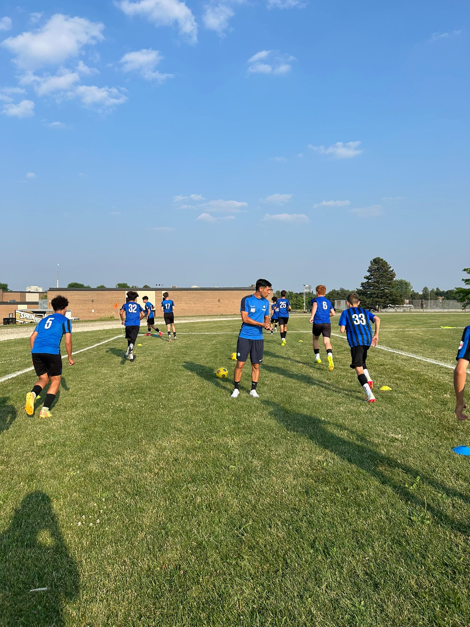 Matteo Babucci, ventidue anni, marscianese, e Leonardo Canonico, ventottenne di Deruta, dallo scorso settembre sono gli allenatori dei bambini dell’Inter Academy di Toronto in Canada. I due, oltre a giocare insieme all’Olimpia Umbra, allenavano anche i bambini e ragazzi della squadra e nel giugno del 2024, durante un summer camp a Perugia, hanno ricevuto la proposta da David Chiodo, allenatore dell’Inter che segue vari camp e progetti Academy in Italia e nel mondo. Tramite Chiodo poi sono stati messi in contatto con il direttore dell’Inter Academy di Toronto. Non è stato facile lasciare il Paese natale per questa esperienza, come ci dice Babucci. “Inizialmente sono rimasto un po’ spiazzato, non ci credevo. È stato un mix di emozioni forti tra felicità, ansia, entusiasmo, che non mi hanno fatto dormire per tutta la notte. Poi, però, la mattina seguente non ci ho pensato due volte a dire di sì. La felicità di essere stato notato da un allenatore dell’Inter, oltre a quella di avere la possibilità di fare ciò che mi piace e mi rende felice in un contesto internazionale vivendo un’esperienza del genere, crescendo sia come persona che come allenatore, hanno avuto la priorità su tutto il resto. Anche se sono un tifoso sfegatato della Roma e all’inizio fa un certo effetto indossare la maglia di una squadra ‘rivale’ poi subentra la riconoscenza verso la società che ti ha dato fiducia, e sapere che stai lavorando per una squadra così importante ti fa sentire orgoglioso di ciò che stai facendo”. Dopo un normale primo periodo in cui pesano distanza da amici e famiglia, oltre a nuovi orari e piccole comodità diverse, Matteo si è ambientato abbastanza facilmente. “La cosa più dura è stato l’inverno canadese: lungo, molto freddo e diverso da ciò a cui ero abituato. Ma nel complesso ammetto di essermela cavata bene”.