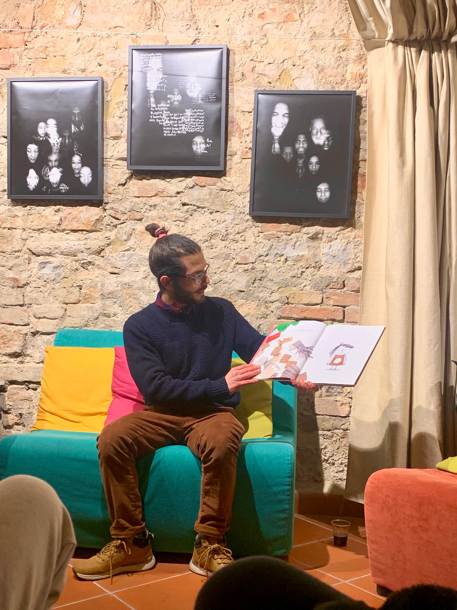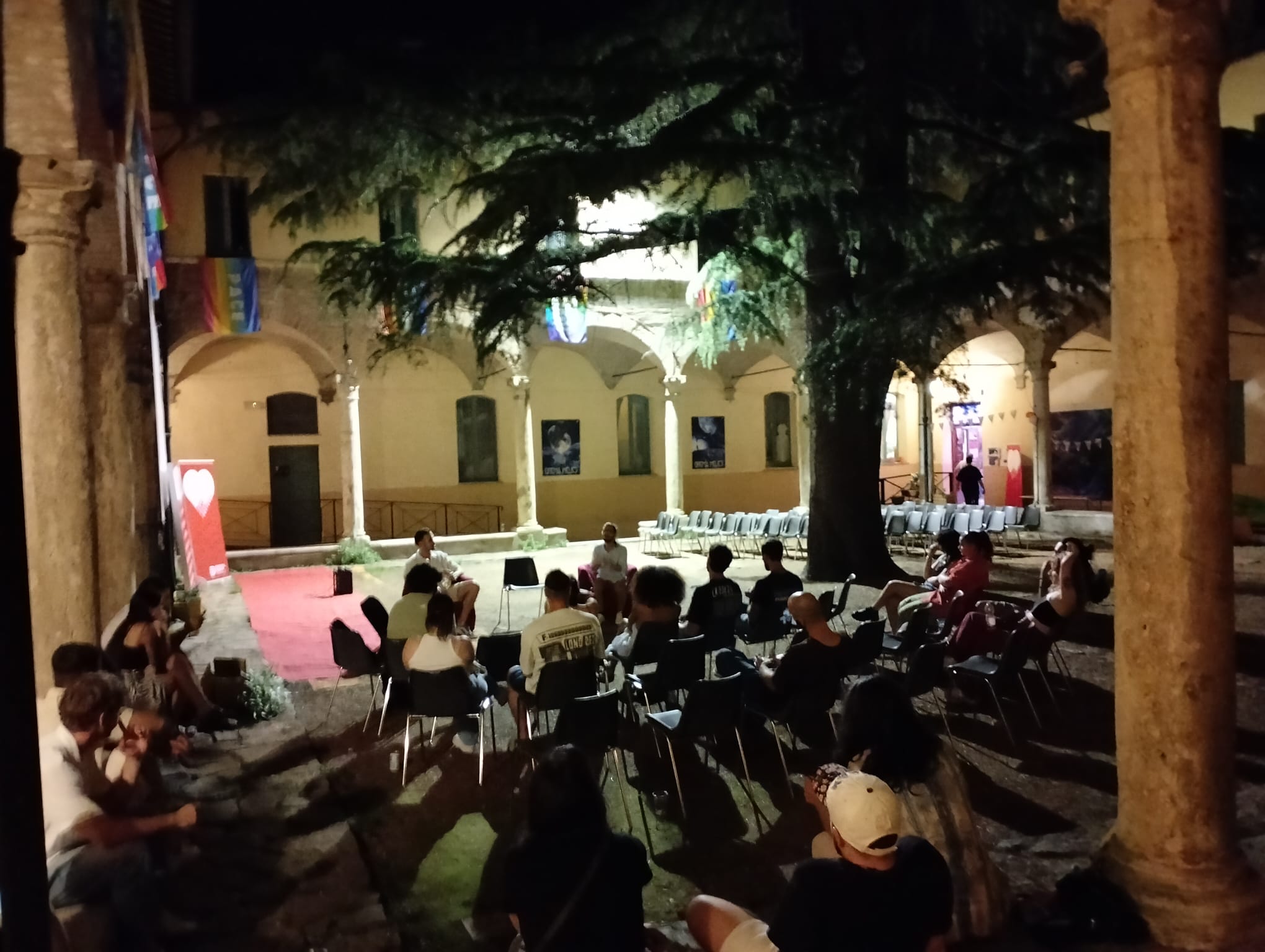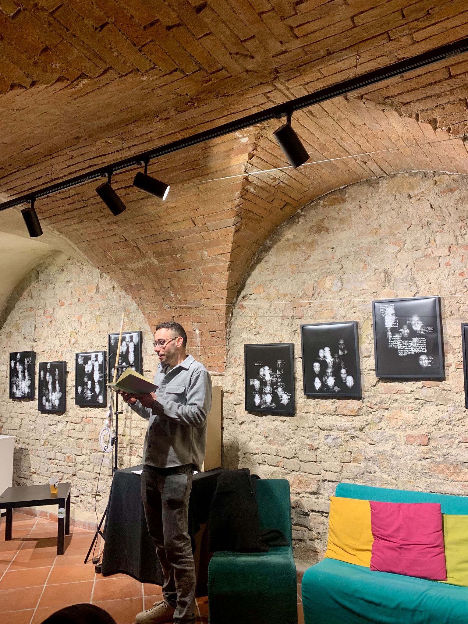 All’inizio è solo un piccolo atto di fiducia. Ci si presenta davanti a un portone antico senza una trama precisa in testa, con quell’attitudine sospesa che si riserva alle cose che non promettono nulla ma potrebbero restituire molto. Non si sa che forma prenderà la serata, né quanto si sarà chiamati in causa. Si sa soltanto che vale la pena attraversare quella soglia. Dentro, a Spazio Cult, le volte in mattoni custodiscono un’aria densa di familiarità e curiosità, come se le pareti avessero già visto passare molte parole prima delle nostre. Siamo a pochi passi dalle scalette vicino all’Università per Stranieri di Perugia, ma il tempo sembra rallentare. Le persone entrano alla spicciolata, si guardano, si siedono dove capita. Poi, quasi senza preavviso, Pietro, cantautore emergente con la chitarra, inaugura lo spazio con uno stornello improvviso, una specie di chiamata collettiva che mette in vibrazione la stanza. Subito dopo arrivano Elia e Matteo.
