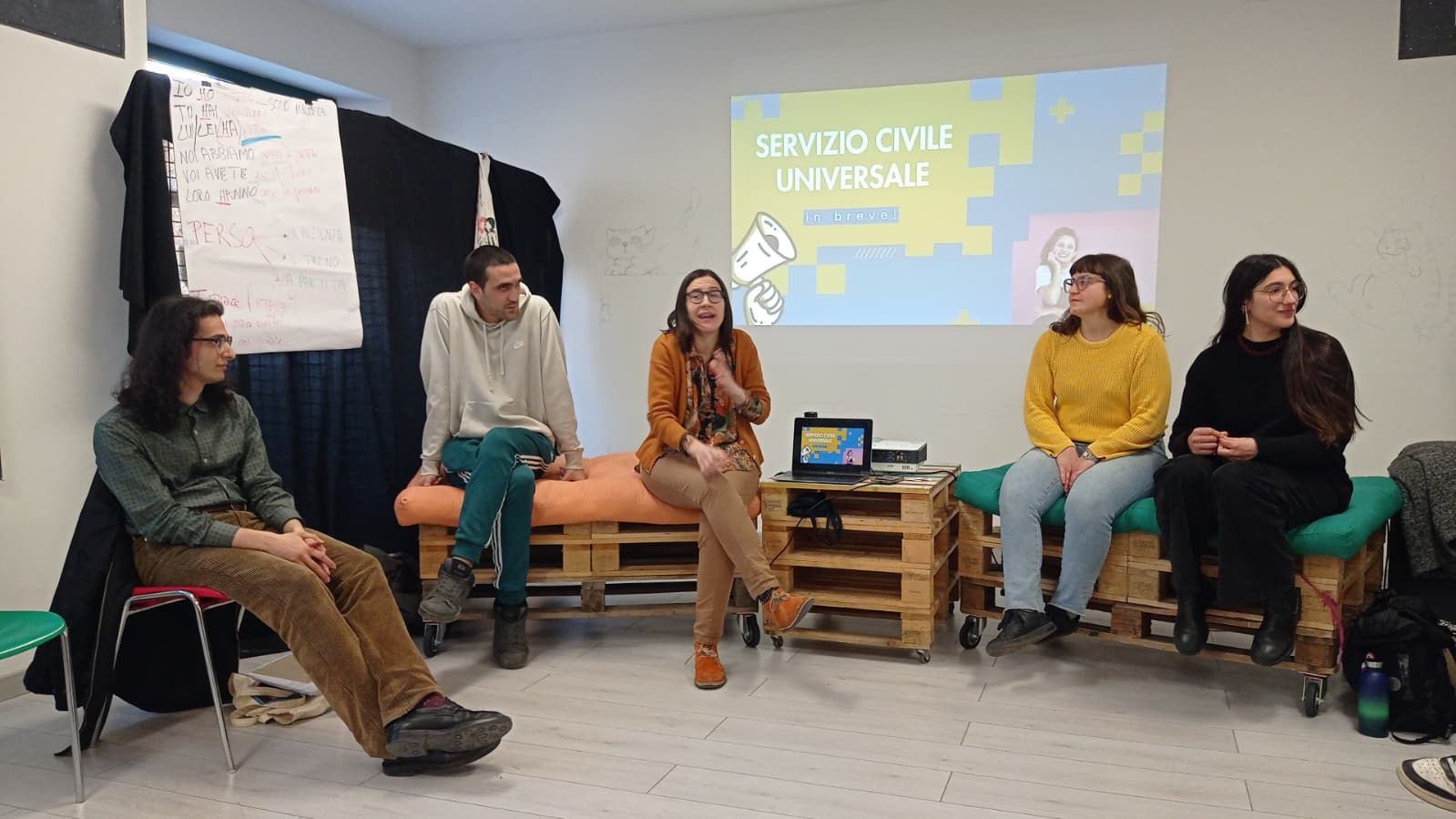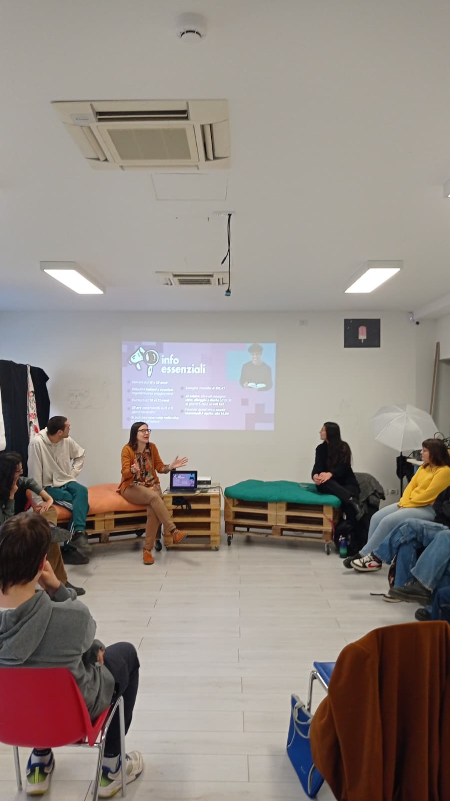 Ludovica, educatrice del CSG, ha illustrato con una presentazione le informazioni più tecniche - come fare domanda, il compenso previsto, come funzionano le selezioni - e ha anche condiviso un piccolo dossier con tutti i progetti disponibili su Perugia assicurando la propria disponibilità a consigliare e accompagnare con il proprio expertise coloro che fossero interessati a fare domanda.