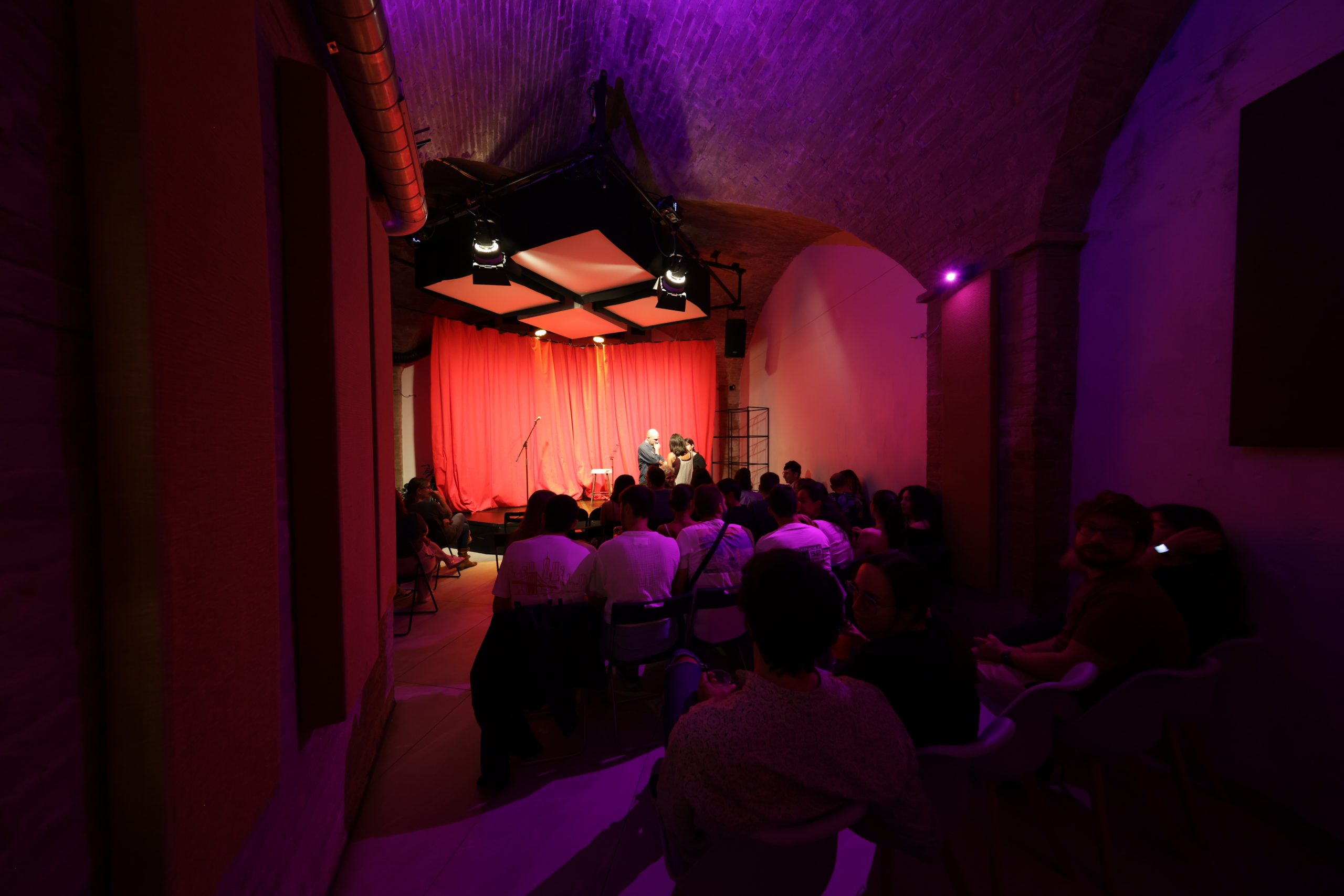 Allo stesso modo, l’incrocio con realtà come Ruzza Comedy racconta un’altra dimensione di questo ecosistema. Un collettivo che negli ultimi anni ha contribuito a costruire una scena di stand-up comedy solida e riconoscibile in Umbria e che, proprio a Spazio Modu, ha trovato un luogo di produzione e sperimentazione. Da questa relazione sono nate rassegne, serate e contenuti come il podcast comico Mezza Ruzza, segnali evidenti di come uno stesso spazio possa generare linguaggi differenti, mantenendo però una coerenza di fondo: attenzione alla qualità, centralità del pubblico, desiderio di costruire qualcosa che resti.